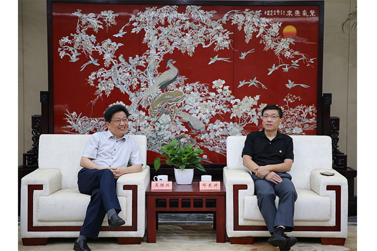8月27日上午,民盟江苏省委专职副主委吴胜兴、组织处处长肖波一行到集团走访交流,集团公司党委书记、董事长邓东升热情接待,集团办公室、人力资源部、党群工作部负责人参加座谈会。
