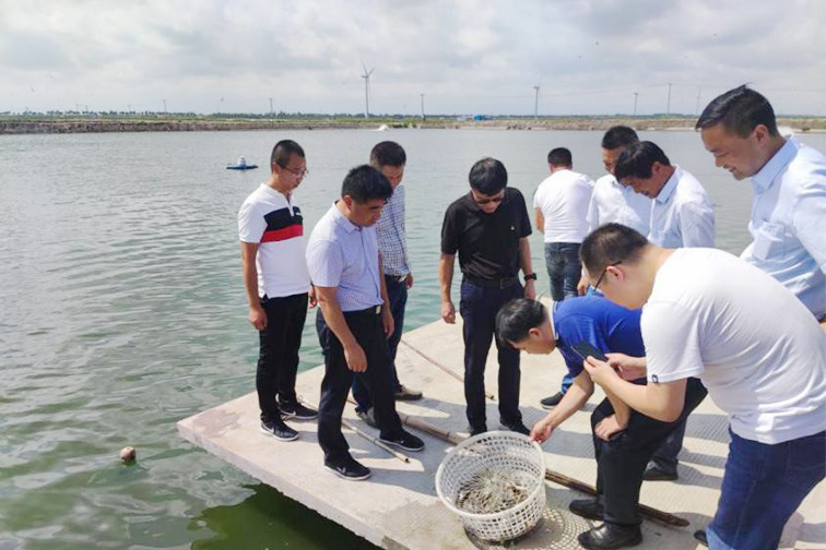 在金东台公司海水自营养殖一线,邓东升仔细询问了1800余亩海水自营池塘的养殖情况,实地察看了脊尾白虾、梭子蟹等水产品的生长情况,听取了公司关于省农业重大技术(虾蟹鱼立体混养)协同推广试点项目的介绍。邓东升对金东台公司海水自营养殖工作表示肯定,他要求,要强化养殖塘口安全管理,确保生产人员和在塘水产品的安全;要做好成品控制和成品销售,建立健全养殖制度,制定海水养殖操作规程,规范养殖生产流程降低养殖风险,提高水产养殖经济效益;要提升技术管理层次,加快技术团队建设,组建培养自己的养殖技术团队,让精品养殖步入提质增效、转型升级新阶段。