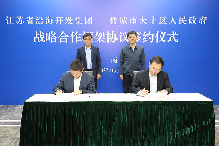 集团公司总经理周金阳与大丰区委副书记陈允春代表双方签署战略合作框架协议。省沿海集团党委副书记姜凯、副总经理尤开军,集团和大丰区相关负责人参加签约活动,并就合作事宜进行了深入协商。